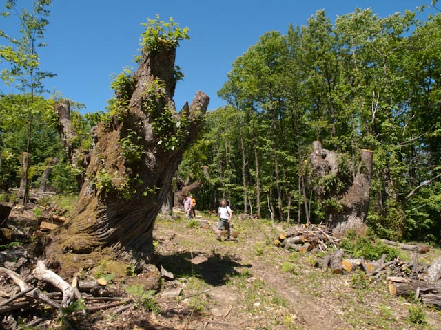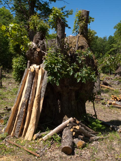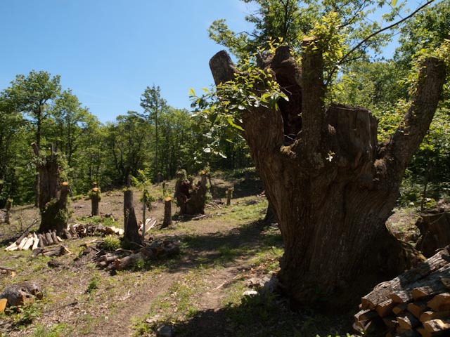Ieri sono tornato a Poranceto con un gruppo di corsisti per fargli conoscere questo luogo così speciale. E’ stata l’occasione per vedere l’evoluzione delle cose che vi avevo raccontato. Purtroppo da allora i lavori di potatura sono avanzati e almeno una decina di giganti pluricentenari sono ora ridotti in queste condizioni.
